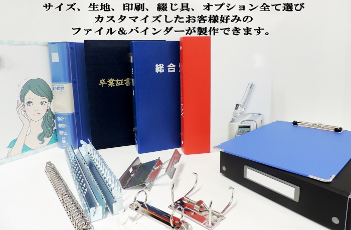 オリジナルファイル・バインダー作成では、素材によって印字方法も限定されてくるため、トータルでのイメージを考慮した選択が必要です。